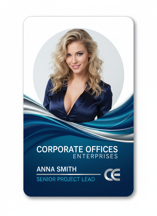 Our custom ID badges are available in multiple layouts to fit different roles and uses. Choose portrait badges for photo-heavy designs, vertical badges for compact layouts, or horizontal badges for a classic employee badge format. Every design can be customized online to match your brand and badge requirements.
